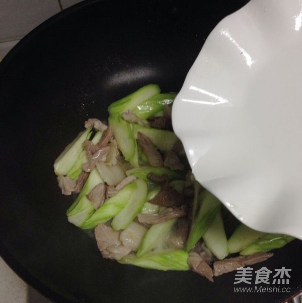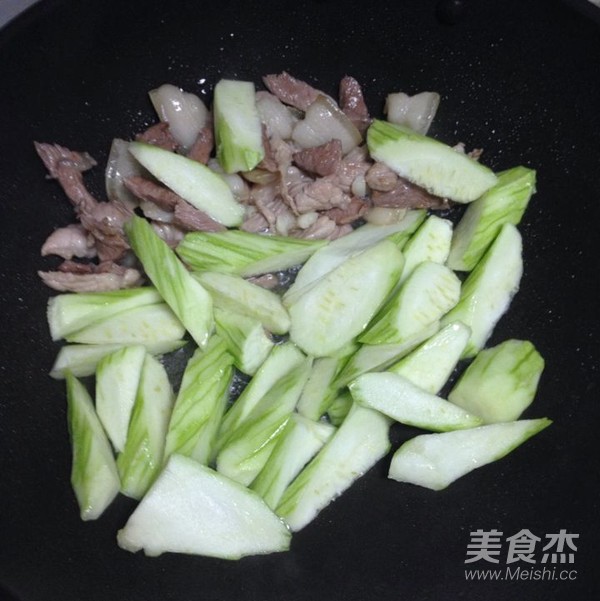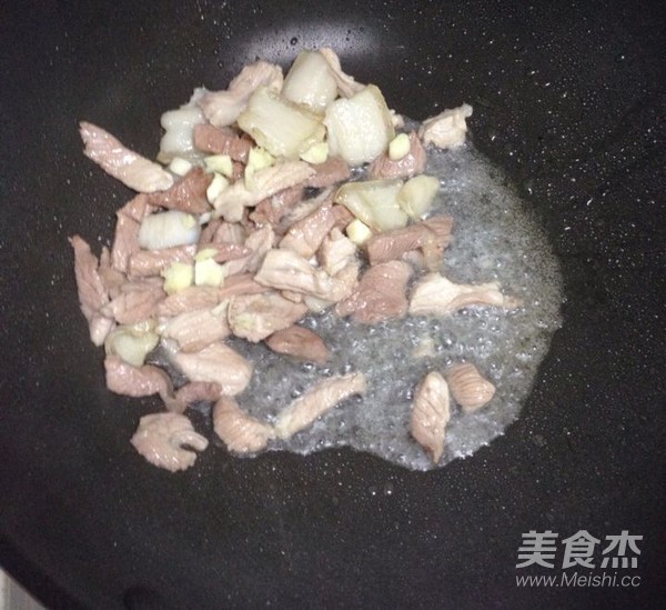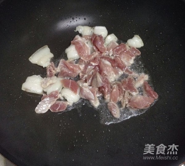 - Cho dầu vào chảo đun nóng, cho phần thịt lợn đã thái vào đảo đều.