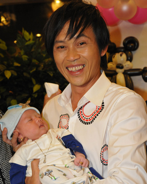 Hoài Linh bế con gái nuôi nhỏ tuổi nhất của mình. Bé là con gái của nghệ sĩ hài Hồng Tơ.