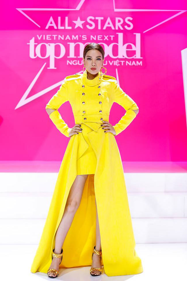 Xuất hiện trong VNTM với vị trí ban giám khảo , Trương Ngọc Ánh diện cây vàng từ đầu đến chân. Chưa kể , thiết kế này còn quá ngột ngạt