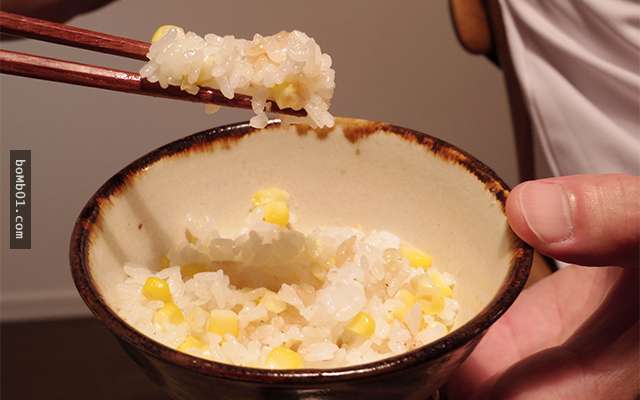 ▼ Khi thưởng thức bạn nên xới đều cơm để cơm và ngô có thể trộn đều.