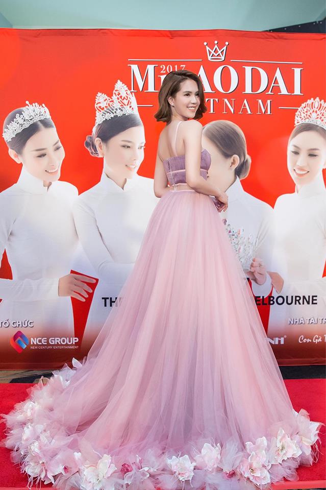 Ngọc Trinh xuất hiện nổi bật trên thảm đỏ đêm chung kết Hoa hậu Áo dài Việt Nam 2017 khi diện chiếc váy xốp nhẹ bồng bềnh, kết hoa lãng mạn do Đỗ Long thực hiện bị nghi "đạo ý tưởng".