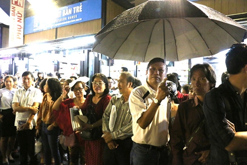 Cuộc hội ngộ lần đầu sau 42 năm xa quê của tác giả loạt tình khúc Không tên với người mộ điệu diễn ra trong cơn mưa rả rích tối 3/8, ở Sài Gòn. Một giờ trước khi giao lưu, đông đảo khán giả đã đến đường sách TP HCM. Lượng khách tham dự vượt dự kiến khiến nhiều người phải đứng để tham gia chương trình.