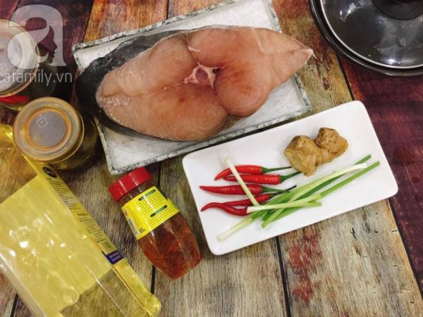 Cá thu mua về rửa sạch, dùng khăn thấm khô, cắt miếng cỡ bao diêm. Cho 3 thìa dầu ăn vào chảo, rán sơ cá cho thơm. Chỉ cần rán hơi xém mặt chứ ko cần rán chín, cá rán kỹ quá sẽ bị khô, không ngon.