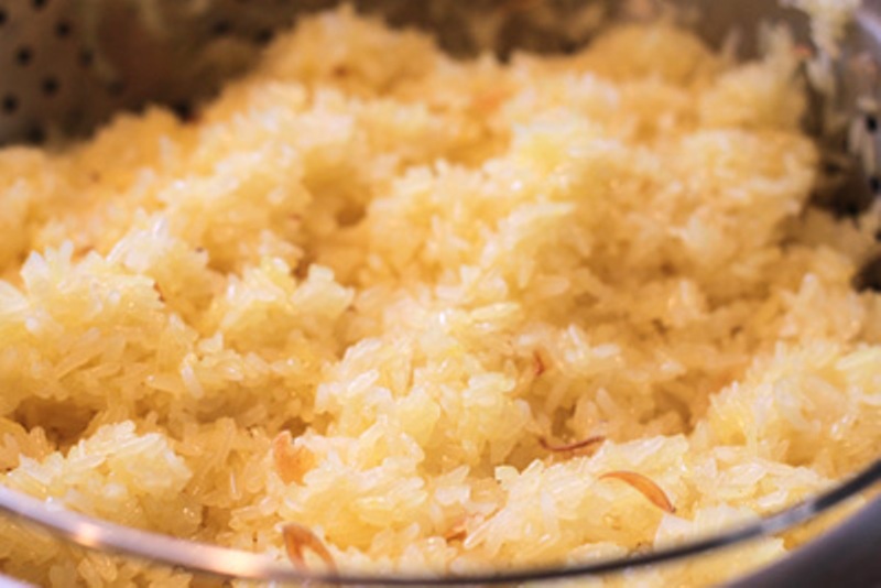 Khi cơm đã chín, bỏ phần lá dứa đi và dùng đũa đảo xôi cho tơi. Xới ra đĩa.