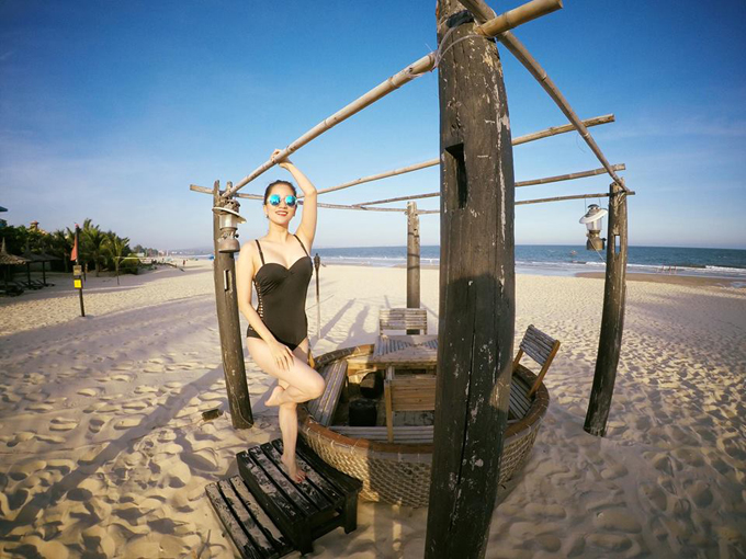 'Gái một con' khoe vóc dáng thon thả trong bộ áo tắm gợi cảm và tạo dáng trước ống kính.