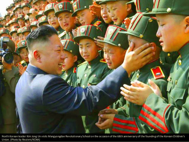 NGÀY KHAI GIẢNG TRƯỜNG TIỂU HỌC Ở BẮC TRIỀU TIÊN! Các em tiểu học đang ngồi nghe Kim Jong Lú nói chuyện.