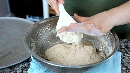 1. Vì bột bánh rất dính tay, nên phải có một chén dầu ăn bên cạnh, để thỉnh thoảng nhúng tay vào chén dầu cho tay không bị dính bột.