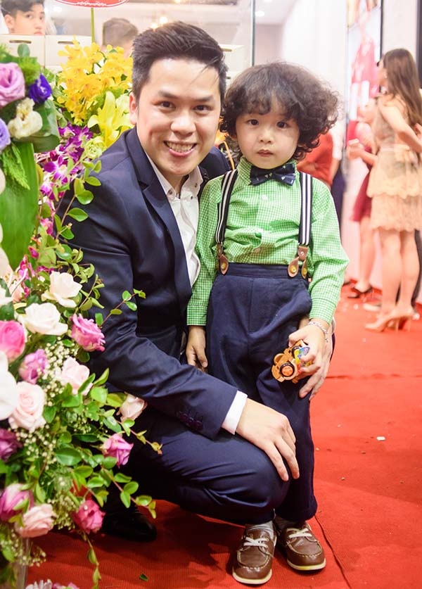 Chồng trông nom con trai trong khi Diễm Hương tiếp khách.