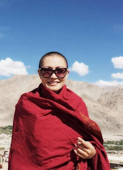 Giữa tháng 9 năm nay, ca sĩ khiến nhiều người ngạc nhiên với h́nh ảnh cạo đầu, mặc trang phục của người tu. Chị cho biết vừa có chuyến đi đến Ấn Độ để tham gia khóa học tu kéo dài hai tuần. Khi đăng h́nh ảnh mới trên trang cá nhân, chị nhận được nhiều lời chia sẻ, đồng cảm từ khán giả.