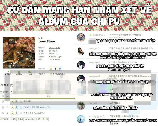 Ngay khi vừa đăng tải trên Melon - trang mạng uy tín nhất Hàn Quốc, album tiếng Hàn của Chi Pu nhanh chóng lọt top 10 tìm kiếm nhưng thực chất, sau khi tìm hiểu kĩ sự thật ngược lại hoàn toàn, và phần bình luận bên dưới đa số của khán giả Việt Nam, bình luận của khán giả Hàn Quốc hầu như rất ít.