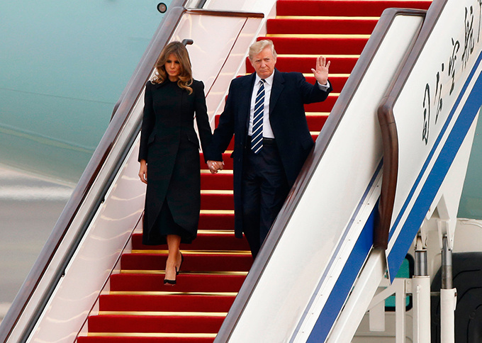 Hôm qua, Tổng thống Trump và phu nhân đến Bắc Kinh, Trung Quốc, nơi bà Melania sẽ kết thúc chuyến thăm châu Á trong khi chồng tiếp tục thăm Việt Nam và Philippines.