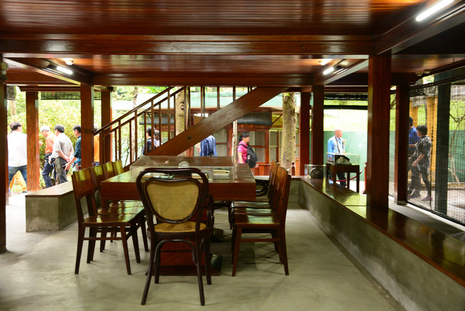 Khu nhà sàn mở cửa đón khách hàng ngày, trừ chiều thứ 2. Một lối đi được dựng xung quanh nhà sàn để khách dạo ngắm, không ảnh hưởng đến di tích. Nhà có hai tầng, thiết kế theo kiểu nhà sàn của đồng bào Tây Bắc. Trong đó, tầng một là nơi tiếp khách, họp bàn. Tầng hai gồm phòng ngủ và phòng làm việc.