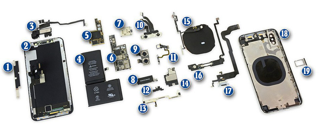 Các bộ phận bên trong một chiếc iPhone X bao gồm: