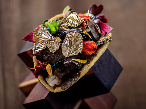 Chiếc bánh taco, món truyền thống của người Mexico này đã “gây bão” năm 2017 bởi nhiều người không tin vào mắt mình khi nhìn thấy cái giá 25.000 USD. Nhà hàng Frida của khách sạn 5 sao Grand Velas Los Cabos Resort (Mexico) đã dồn hết tinh hoa của thế giới ẩm thực vào chiếc bánh này: bò Kobe, trứng cá tầm trắng Almas (loại đắt nhất thế giới), phô-mai mềm nhồi nấm truffle đen, sốt salsa ớt Morita khô, cà-phê cầy hương, rượu tequila Ley .925 (225.000 USD/chai) và bột vàng. Hãy nhớ rằng cái giá 5 con số này chưa bao gồm giá phòng!