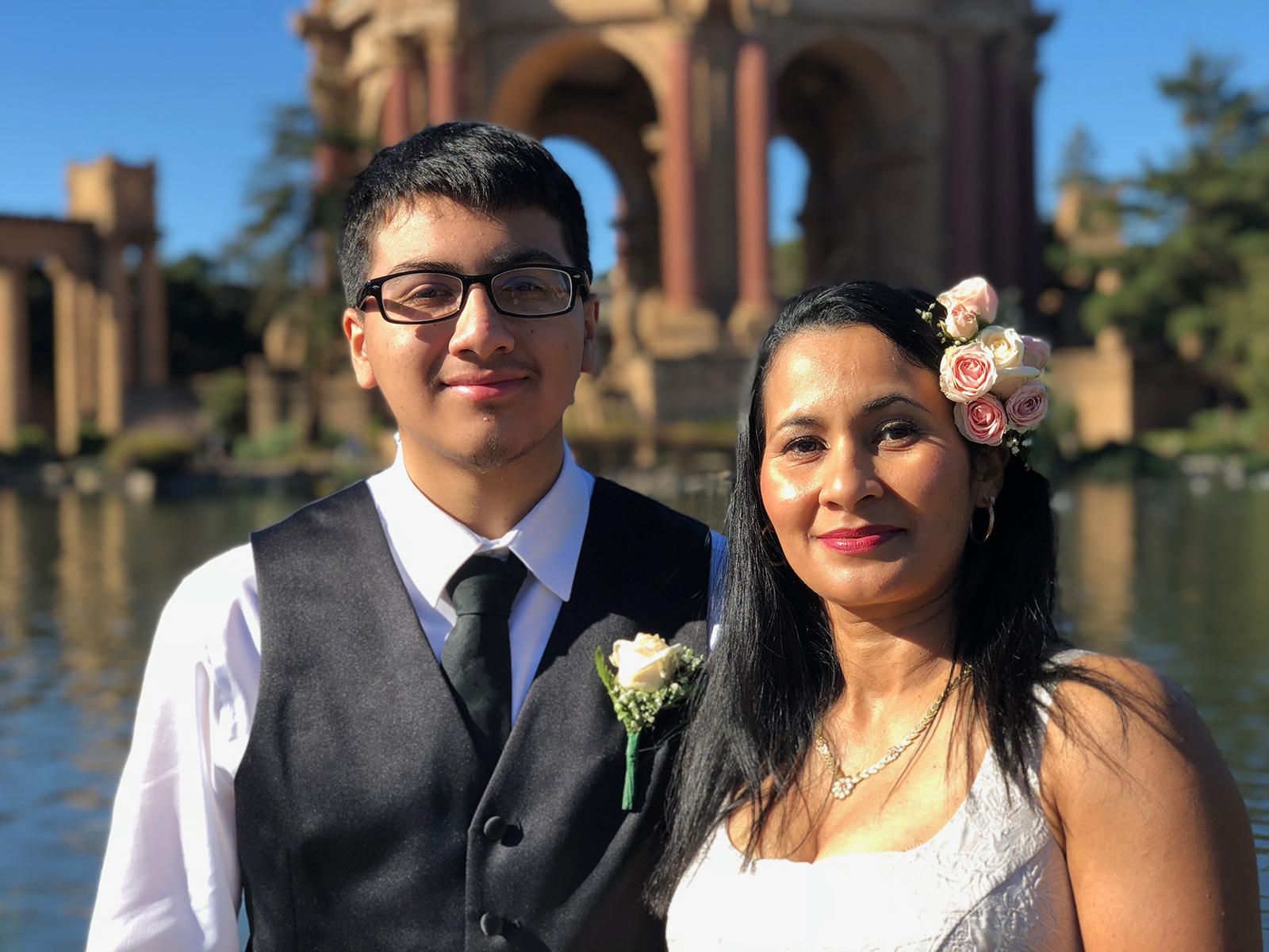 Đây là ảnh chụp một cặp đôi mới cưới từ chế độ chân dung của iPhone X (ảnh trên) và ở chế độ gốc, không hiệu ứng gì trên chiếc iPhone đời đầu (ảnh dưới).