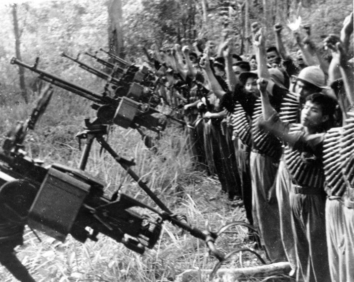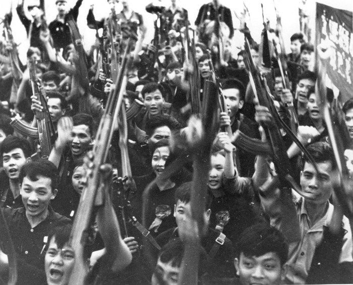 Nụ cười của lính trẻ, trên tay ôm những khẩu súng là chiến lợi phẩm sau một trận đánh vào thời kỳ năm 1968