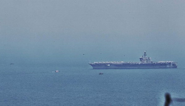 Một số hình ảnh hàng không mẫu hạm USS Carl Vinson đang tiến vào Đà Nẵng. Do sương mù nên hơi khó nhìn, nhưng vào khoảng 11 giờ, tàu đã tới vịnh Đà Nẵng. Người dân và du khách có mặt ở Sơn Trà để chứng kiến cảnh hàng không mẫu hạm lần đầu đến Đà Nẵng.