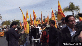 Vietnamese-American, lead by Liên Ủy Ban Chống Cộng Sản và Tay Sai, đang phát động biểu tình Trung Tâm Băng Nhạc Thúy Nga và Việt Face TV, protesting VietFace-TV, on Brookhurst Street, next to Mile-Square Park.