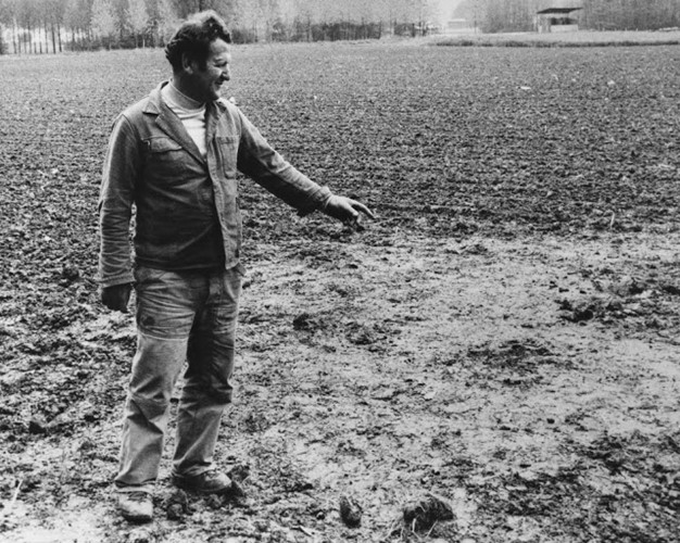 Người đàn ông chỉ vào chỗ quan tài chứa thi hài của Charles Chaplin được tìm thấy sau khi bị đánh cắp.