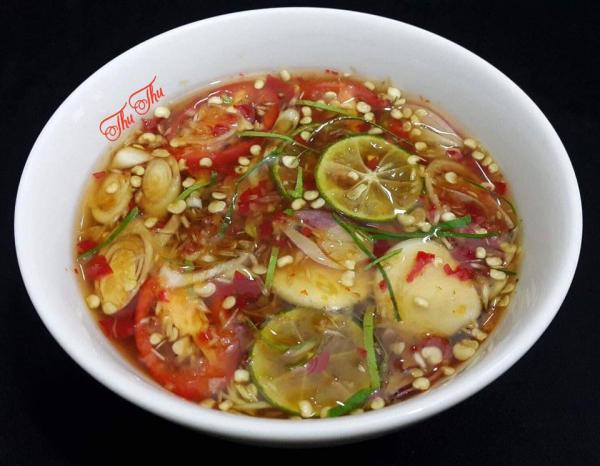 300 gr đường + 300 gr giấm tinh luyện + 300 gr nước mắm. Tất cả nấu sôi để thật nguội.