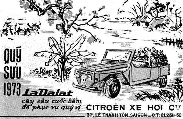 Câu chuyện của chú Ba khiến tôi quan tâm, bởi thời ấy tuy chưa biết nhiều về các loại xe hơi nhưng tôi đã nghe người lớn kháo nhau về chiếc La Dalat, và tôi từng thấy nhiều xe này chạy trên đường phố Sài Gòn. Chiếc xe hơi “Made in Vietnam” trông ngầu, đường nét góc cạnh giống xe Jeep, mui vải có thể tháo ra thành mui trần để tà tà bát phố. Có xe mui kín bốn chỗ ngồi, hoặc loại đòn xe dài mà chú Ba Tam nói rằng La Dalat sản xuất đến bốn kiểu xe khác nhau. Ðúng là như vậy. Nhiều người thích xe hai chỗ hơn, phía sau chở hành lý đồ đạc về quê hay đi du lịch miền biển miền núi đều sành điệu. Tôi nhớ mấy tấm bích chương quảng cáo dán ở vách tường bên hông tòa nhà đầu đường Nguyễn Huệ và bến Bạch Ðằng vẽ hình chiếc La Dalat trong khung cảnh miền quê mùa xuân Quý Sửu năm 1973. Bây giờ tôi bắt gặp lại hình ảnh này trên trang mạng lòng vẫn còn thấy mới như ngày nào khi chương trình quảng cáo rầm rộ trên đài phát thanh với lời xướng ngôn viên trầm ấm: “La Dalat cày sâu cuốc bẫm để phục vụ quý vị”.