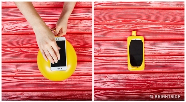 Hướng dẫn: Thổi một quả bong bóng nhưng đừng quá căng, chỉ thổi khoảng 1/2 quả bóng là được. Sau đó, áp phần lưng điện thoại lên bong bóng rồi dần thả tay đang cầm phần miệng bong bóng để hơi xì ra từ từ. Một lúc sau bong bóng sẽ trở thành một cái ốp lưng độc đáo.