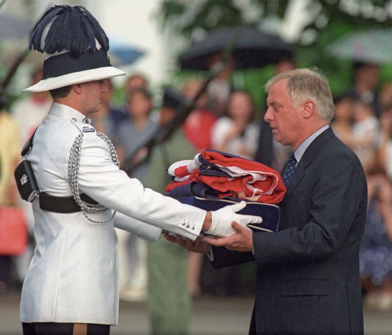 Vào ngày 1/7/1997, Hong Kong chính thức được trao trả cho Trung Quốc. Chris Patten, thống đốc cuối cùng của Hong Kong thuộc Anh, đã nhận quốc kỳ Anh sau khi nó được kéo xuống khỏi dinh thự của ông. Người dân Hong Kong đã chứng kiến khoảnh khắc quốc kỳ Trung Quốc được kéo lên ở hòn đảo này.