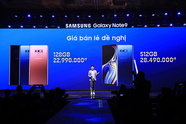 Sau bao ngày mong đợi cuối cùng Galaxy Note9 đă chính thức ra mắt tại Vn ngày hôm nay. Mức giá của Galaxy Note9 từ 22,99 triệu đồng giành được khá nhiều sự quan tâm của mọi người. Dưới đây là 1 số diễn biến đáng chú ư trong lễ ra mắt này. Sự kiện ra mắt Galaxy Note9 diễn ra vào chiều 14/8 ở TP HCM, quy tụ đông đảo khách mời, giới công nghệ, ngôi sao giải trí và các đối tác của Samsung tại Việt Nam.Theo một khảo sát do Samsung thực hiện, hiện có tới 80% người dân Việt Nam sử dụng smartphone. Ông Kim Cheol Gi - Tổng giám đốc công ty điện tử Samsung Vina đánh giá đây là một thị trường đầy tiềm năng nhưng nó cũng mở ra nhiều thách thức với các hăng di động khi phải luôn t́m những điều mới mẻ để đáp ứng nhu cầu luôn có chiều hướng khắt khe hơn của người dùng.