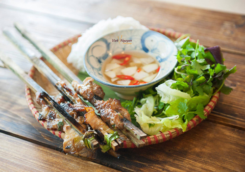 Một số hàng vẫn giữ hình thức kẹp thịt vào que tre để nướng.