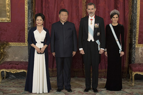 Vợ chồng Chủ tịch Trung Quốc dự tiệc chiêu đãi của vua và hoàng hậu Tây Ban Nha tối 28/11. Ảnh: AFP