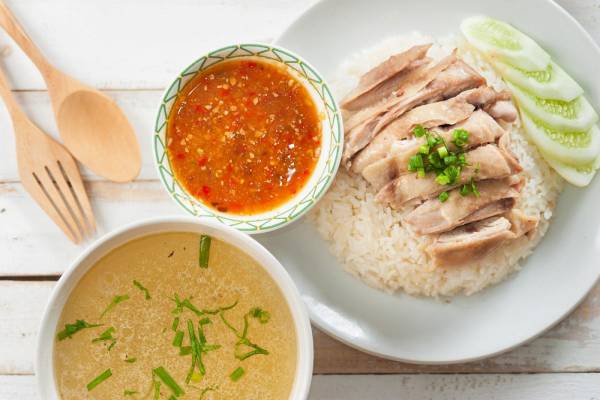 Có nguồn gốc từ tỉnh Hải Nam ở Trung Quốc, nhưng cơm gà Hải Nam cũng được coi là một trong những món ăn quốc gia của Singapore. Cơm gà Hải Nam là "món tủ" tại nhà hàng Tian Tian, Maxwell Food Court, Boon Tong Kee và Wee Nam Kee.