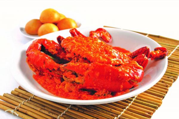 Một trong những món ăn đặc trưng là món cua ớt Singapore. Cua được nấu chín trong nước sốt cà chua cay nhẹ. Bạn có thể thử cua ớt là tại nhà hàng hải sản Jumbo.