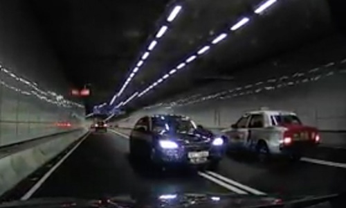 Người đàn ông lái xe đi ngược chiều trong hầm ở Hong Kong. Chiếc xe đi ngược chiều với tất cả các phương tiện khác. Đây là hành động rất nguy hiểm và liều lĩnh.