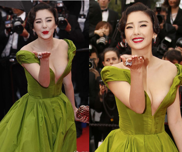 Chiếc váy hiệu Ulyana Sergeenko mà Phạm Băng Băng diện năm 2013 là một trong những thiết kế táo bạo nhất nữ diễn viên từng diện. Bộ váy trễ vai với thiết kế xẻ sâu khoe gần hết vòng 1 của nàng Hoa đán.