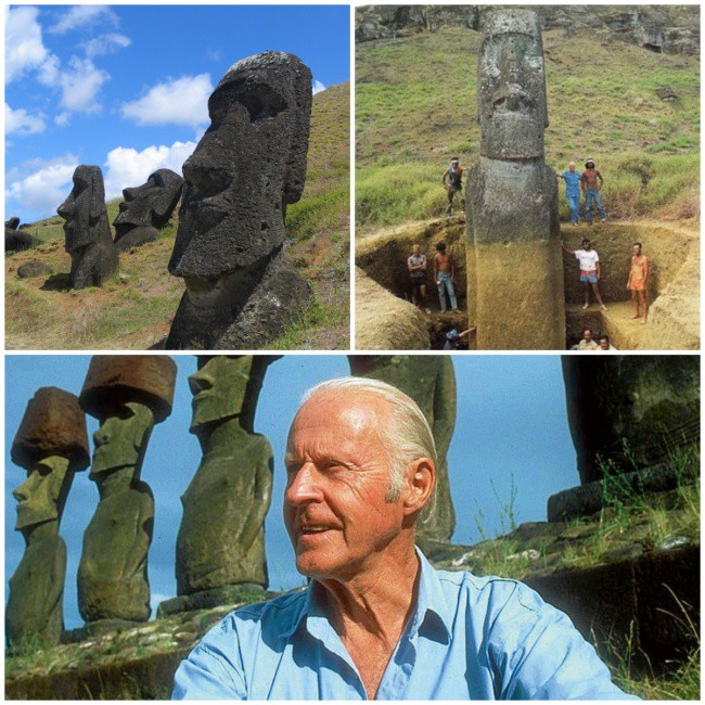 Đảo Phục Sinh thì quá nổi tiếng với những bức tượng đầu người (gọi là Moai) rồi. Có điều trước kia, người ta tưởng rằng các bức tượng ấy chỉ là những cái đầu người bằng đá đơn thuần thôi. Chỉ đến khi nhà thám hiểu huyền thoại Thor Heyerdahl ra tay, mọi chuyện mới được làm sáng tỏ.