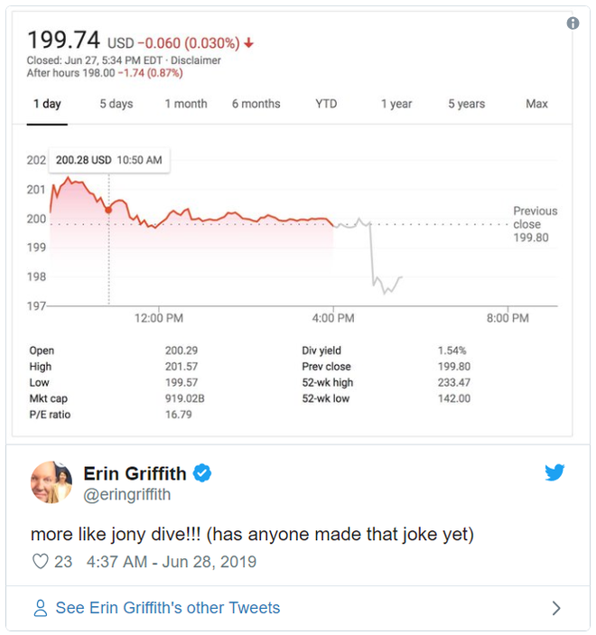 Với kết quả giao dịch cổ phiếu ở trên, có thể thấy các nhà đầu tư không quá hoảng hốt trước thông tin này, khi biên độ thay đổi vẫn tương đối khiêm tốn, nhưng rõ ràng nó cho thấy phố Wall đã chú ý đến động thái này.