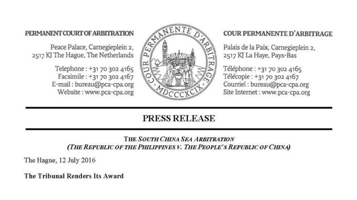 Mặc dù Trung Quốc là một quốc gia thành viên của UNCLOS, ký kết ngày 10/12/1982 và văn bản thông qua Quốc Hội đệ nạp ngày 07/06/1996, nhưng Bắc Kinh đã không nhìn nhận phán quyết này của Tòa án Trọng tài thường trực, nói gì đến chuyện Bắc Kinh tuân thủ công pháp quốc tế.