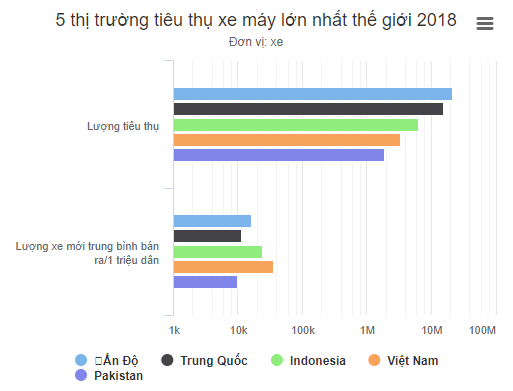 Khu vực châu Á-Thái Bình Dương là mỏ vàng của các hãng xe máy trên thế giới. 5 thị trường xe hai bánh lớn nhất toàn cầu đều tập trung nơi đây: Ấn Độ, Trung Quốc, Indonesia, Việt Nam và Pakistan, theo Motorcycles Data.