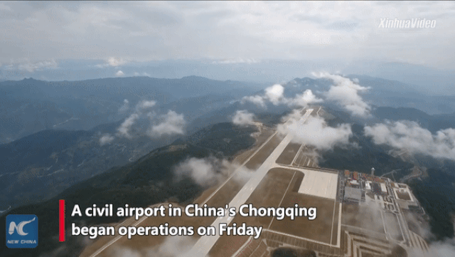 Một sân bay dân dụng chính thức đi vào hoạt động hôm 16/8, tọa lạc trên núi cao cách mặt nước biển hơn 1700 m tại thành phố Trùng Khánh, Trung Quốc được ví nằm trên biển mây.