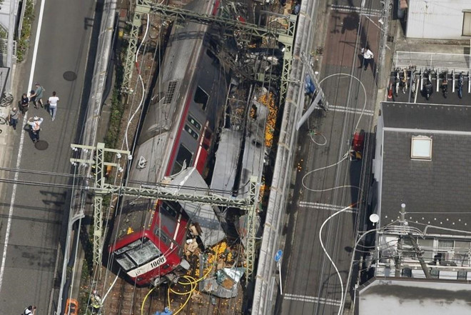 Hiện trường vụ tai nạn đường sắt tại Yokohama. Ảnh: Kyodo.