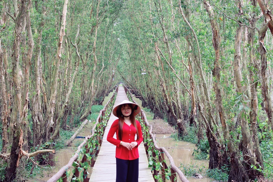 Cầu tình yêu dài hàng trăm mét đưa du khách khám phá bên trong rừng tràm.