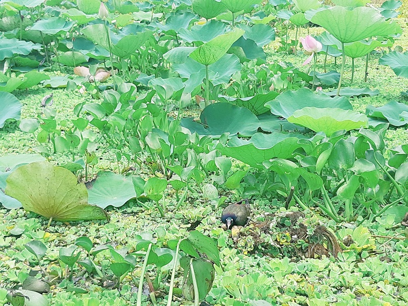 Du khách sẽ thích thú khi tận mắt chứng kiến nhiều loại chim đẻ trứng, ấp trứng trên những lớp bèo dập dìu theo con nước nổi.