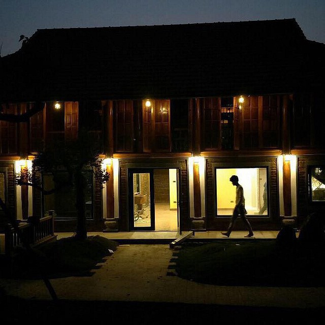 Căn nhà được xây dựng theo kiến trúc thuần Việt với mái ngói đỏ tươi, không gian mở vô cùng gần gũi với thiên nhiên.