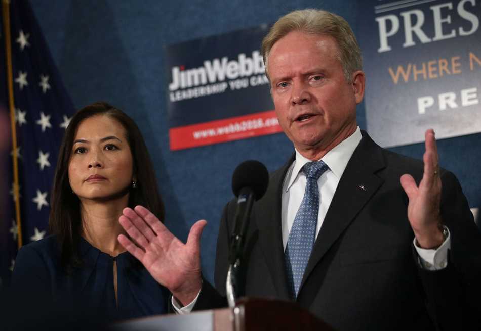 Cựu TNS Jim Webb (phải) và phu nhân, bà Hồng Lê Webb. (Hình: Getty Images)