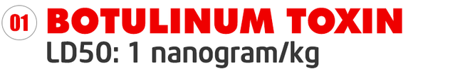 Thư viện Y học Quốc gia Mỹ cho biết, chỉ 1 gram chất độc Botulinum ở dạng tinh thể có thể giết chết hơn 1 triệu người.