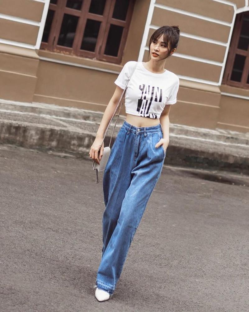 Jeans và crop top cũng đem lại cho Minh Hằng điểm cộng đáng kể. Nữ ca sĩ nâng cấp bộ cánh street style nhờ điểm xuyết thắt lưng Chanel và túi Hermès cỡ nhỏ xinh xắn.
