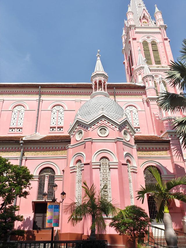 Độc đáo nhà thờ màu hồng, mang kiến trúc cổ kính châu Âu ở Sài Gòn. Đó là nhà thờ Tân Định, quận 3, TP.HCM. Đây là địa điểm thu hút nhiều du khách trong và ngoài nước tới tham quan.