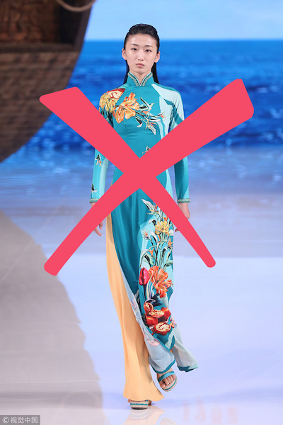 Nhà thiết kế Trung Quốc ăn cắp mẫu áo dài của Việt Nam. Trơ trẽn hơn còn gọi đó là sáng tạo mới, "phẩm giá của trang phục truyền thống Trung Quốc".