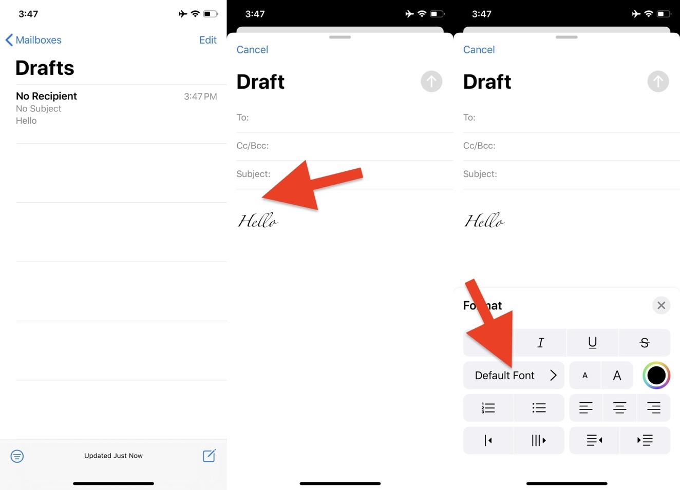 Mặc dù cách này không mấy thuận tiện vì nó yêu cầu bạn phải xóa một phần văn bản trong nội dung thư, nhưng nó lại rất hiệu quả trong việc khôi phục phông chữ mặc định trên ứng dụng Mail.