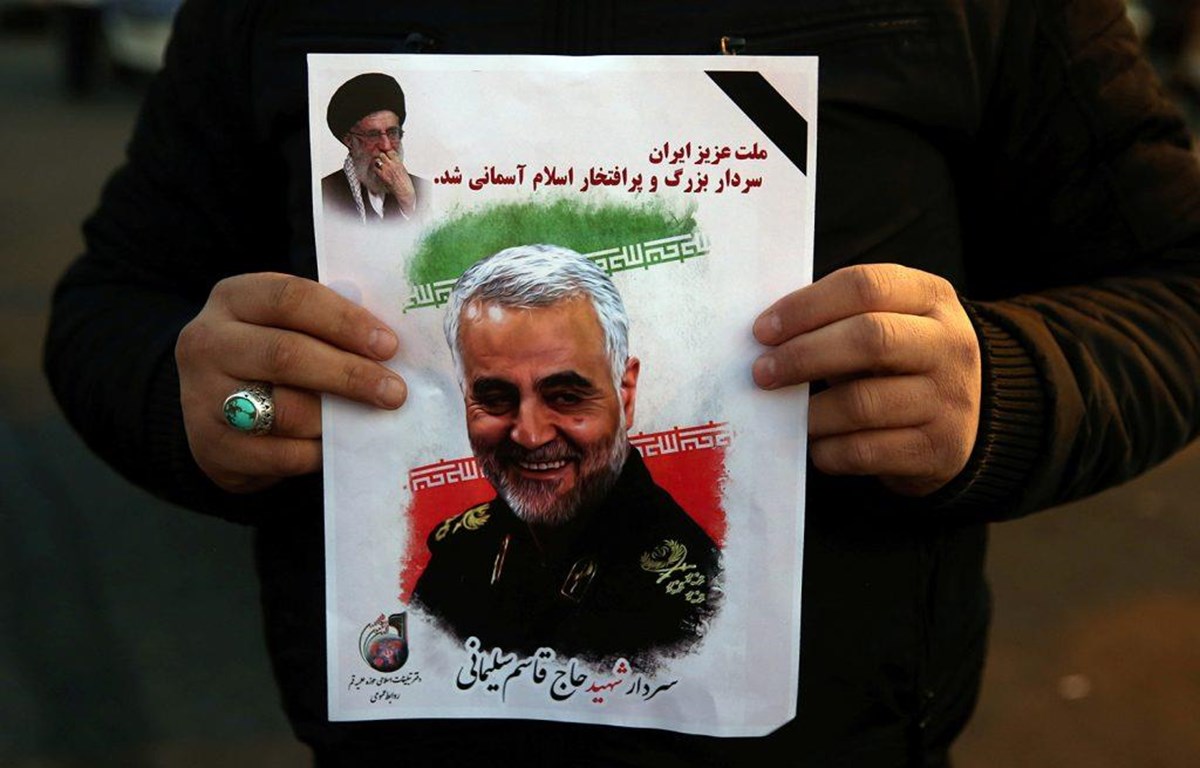 Một người ủng hộ cầm ảnh chân dung Tướng Iran Qasem Soleimani. (Nguồn: Reuters)